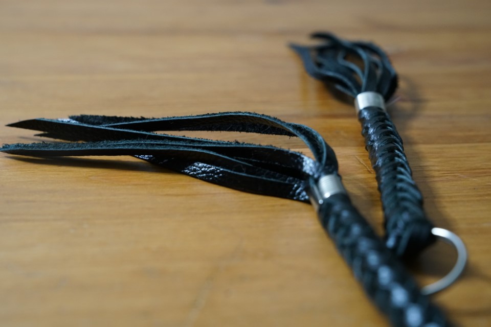 29. Leather Whip End Attachment Braided leather whip end attachments, each 8cm / 3.2″ long, with 8 tails at the end. Stingy Category: OTHER Tag: STINGY RELATED TOYS Read more OTHER07. Cotton Finger Flogger Attachment Set Read more OTHER62. Silver Whip End Attachment Read more WHIPS19. Jack’s Pocket Singletail