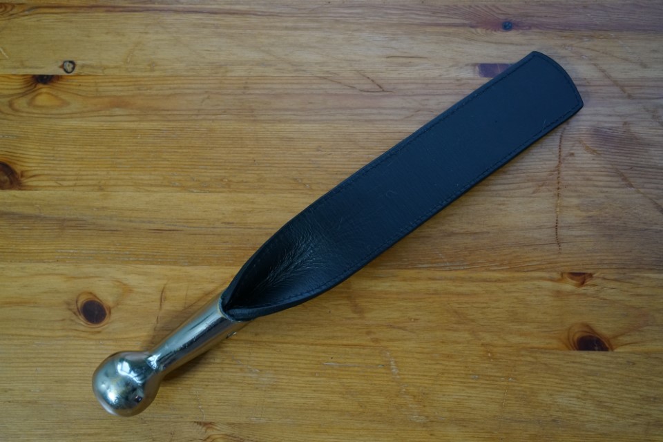 68. The Dominator A thick cowhide leather slapper, 28cm / 11″ long and 5cm / 2″ wide, attached to a metal handle. Thuddy Category: STRAPS & SLAPPERS Tag: THUDDY RELATED TOYS Read more FLOGGERS13. Giant Chain Flogger Read more STRAPS & SLAPPERS58. Rubber Tread Slapper Paddle Read more STRAPS & SLAPPERS42. Pussy Slapper